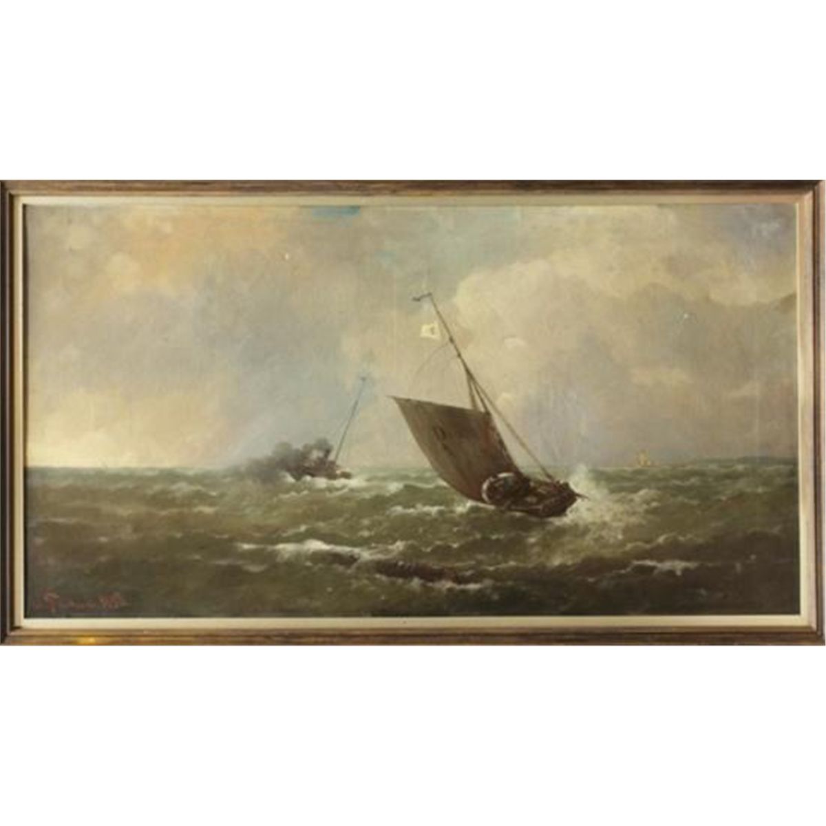 MWF1530 Framed oil on canvas, Ships in Rough Seas, 1893, Italian School (19th century), signed ~~A. Travisani 1893~~ lower left, overall: 31~~h x 54.5~~w