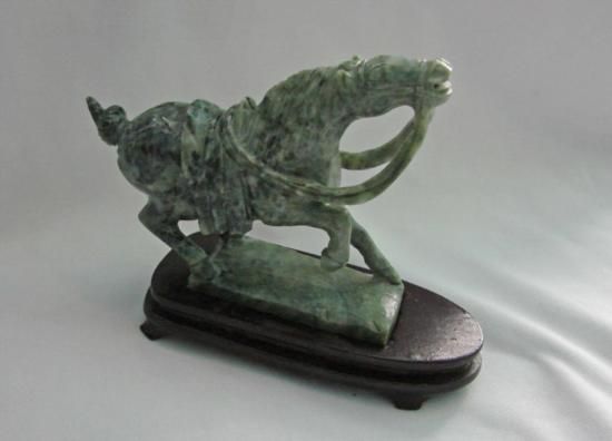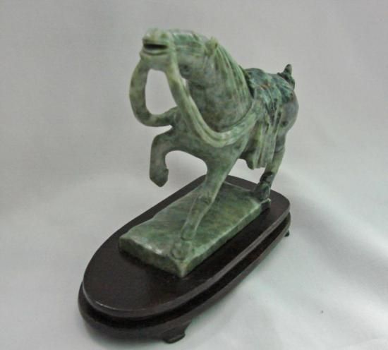 MWF1540 EXCELLENT DETAILED HANDCARVED CHINESE GREEN JADE depicting a Tang Dynasty Horse, measures apprx 5~L. x 1.5~ W. x 4~ H