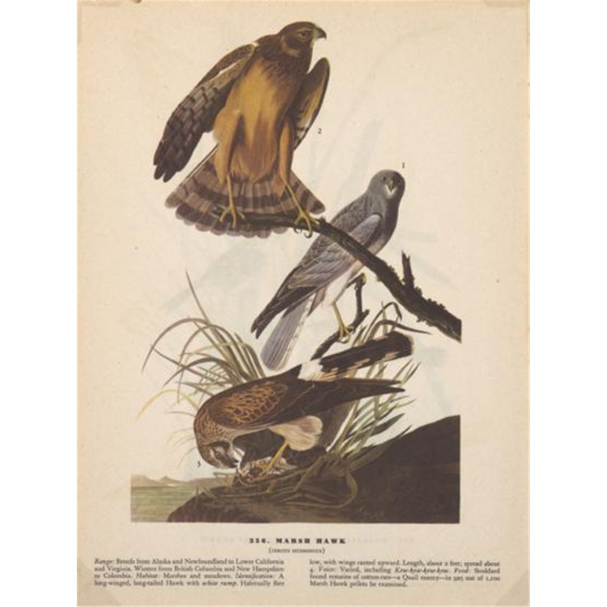 MWF1564~ MARSH HAWK ~ FRAMED MATTED PRINT ~ 14 X 11 ~The Birds of America - John James Audubon Circa 1946