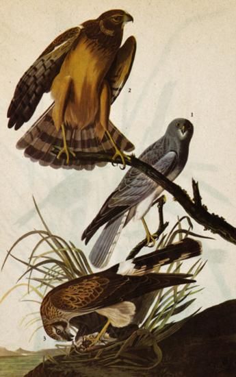 MWF1564~ MARSH HAWK ~ FRAMED MATTED PRINT ~ 14 X 11 ~The Birds of America - John James Audubon Circa 1946