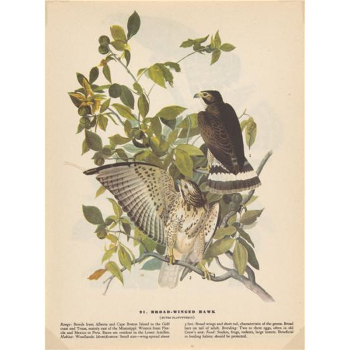 MWF1567~ BROAD WINGED HAWK ~ FRAMED MATTED PRINT ~ 14 X 11 ~The Birds of America - John James Audubon Circa 1946