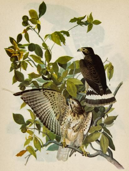 MWF1567~ BROAD WINGED HAWK ~ FRAMED MATTED PRINT ~ 14 X 11 ~The Birds of America - John James Audubon Circa 1946