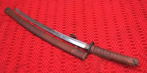 Japanese Military Officers Short Sword with Oxhide Saya