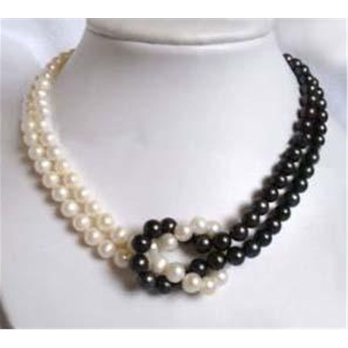 MWF978 GORGEOUS 6-7MM TAHITIAN BLACK WHITE PEARL NECKLACE