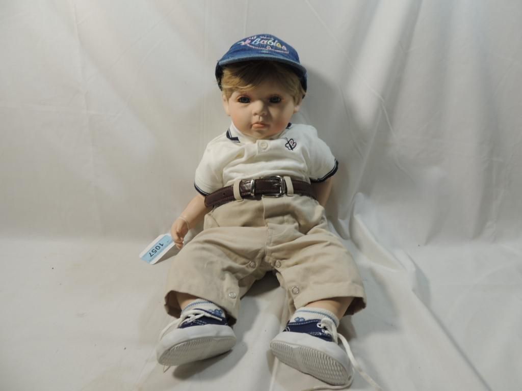 MY WAY BABIES PORCELAIN DOLL BOY WITH BLONDE HAIR BASEBALL HAT AND KHAKI PANTS AND POLO SHIRT. AS SHOWN. SEE PHOTO FOR MORE DETAILS.