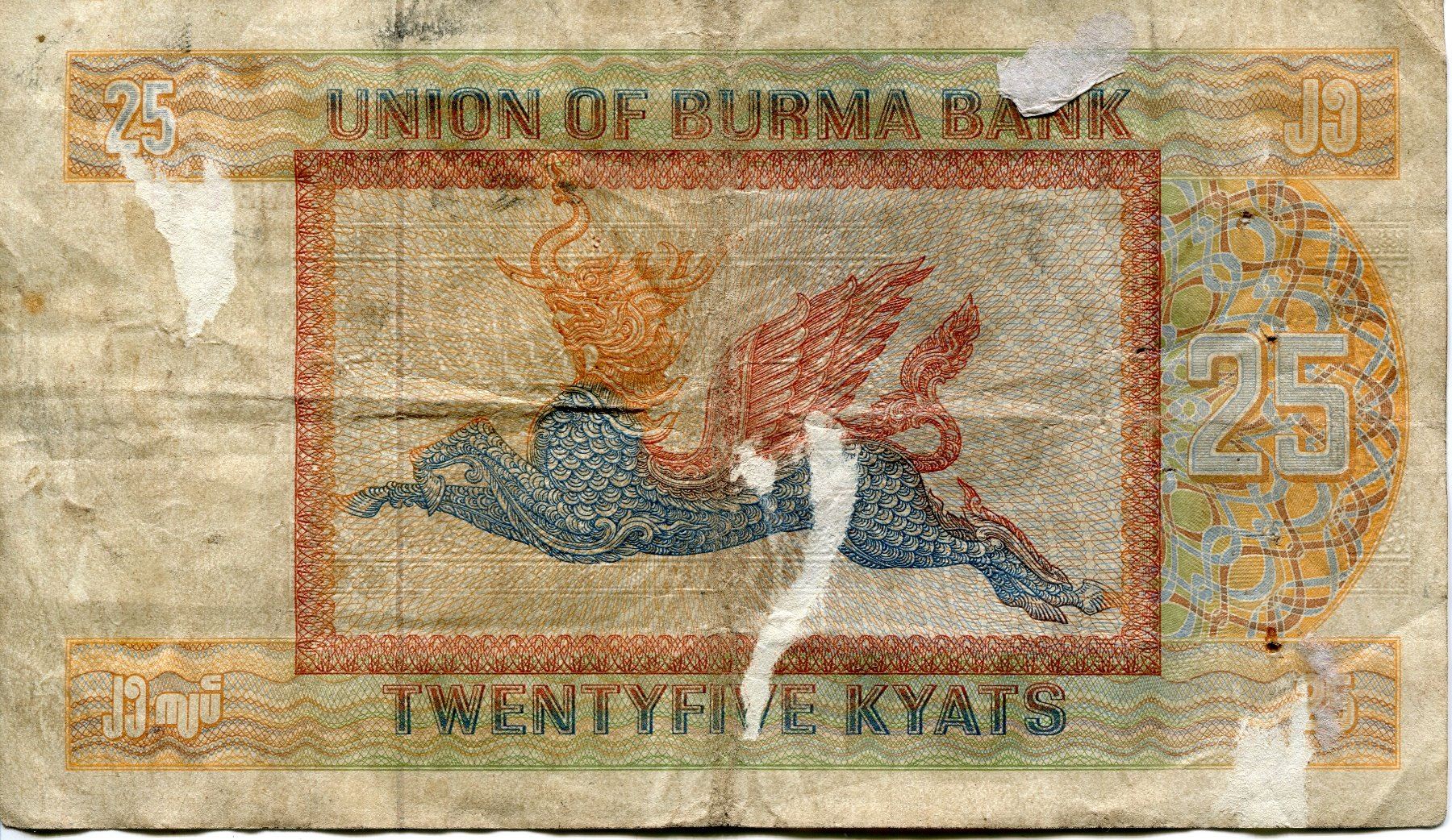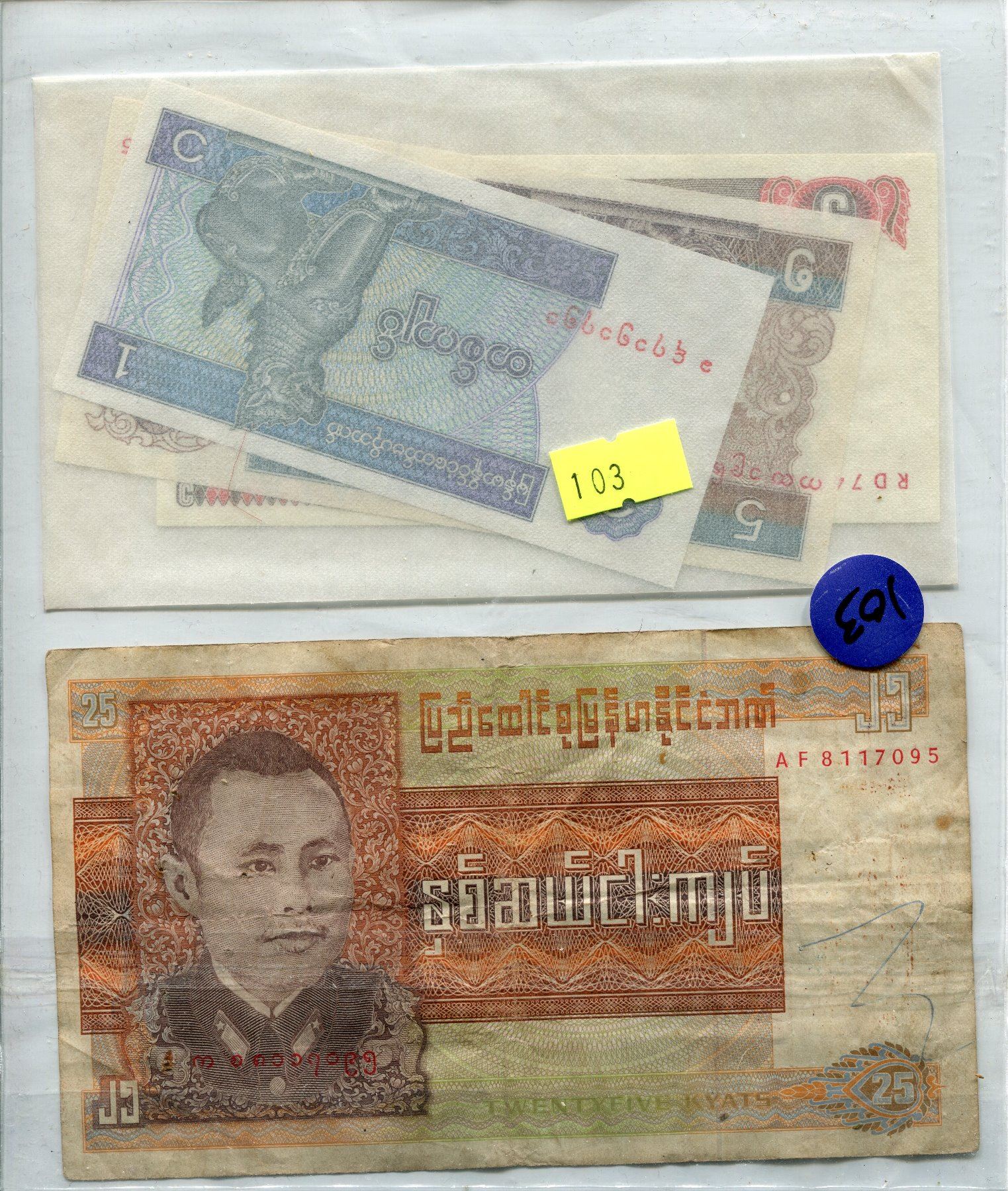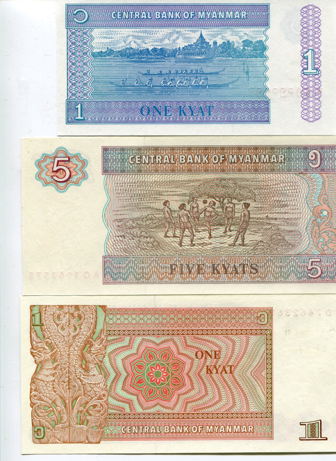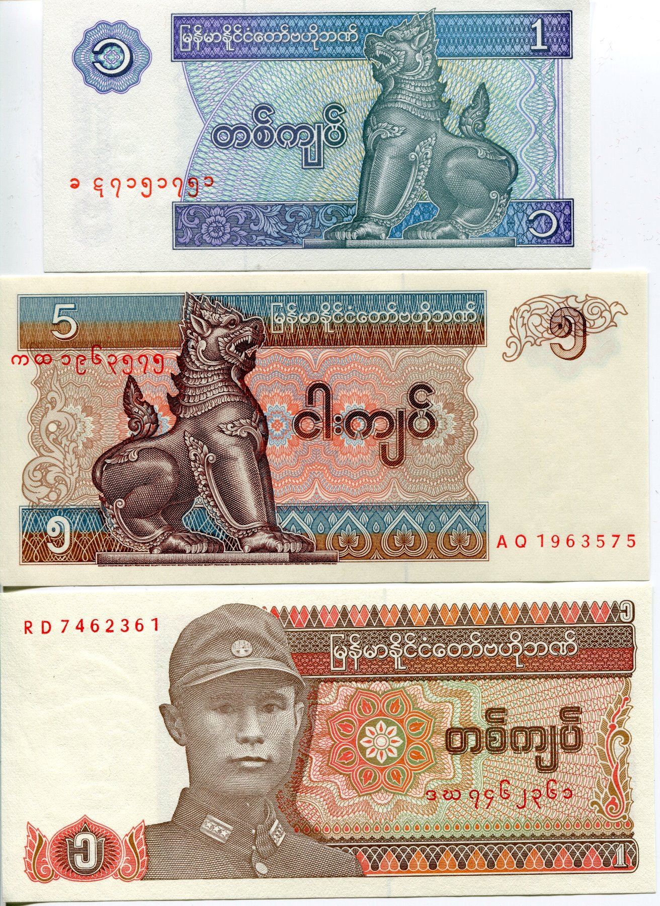 MYANMAR 3 BANK NOTES 1 BURMA BANK NOTE,