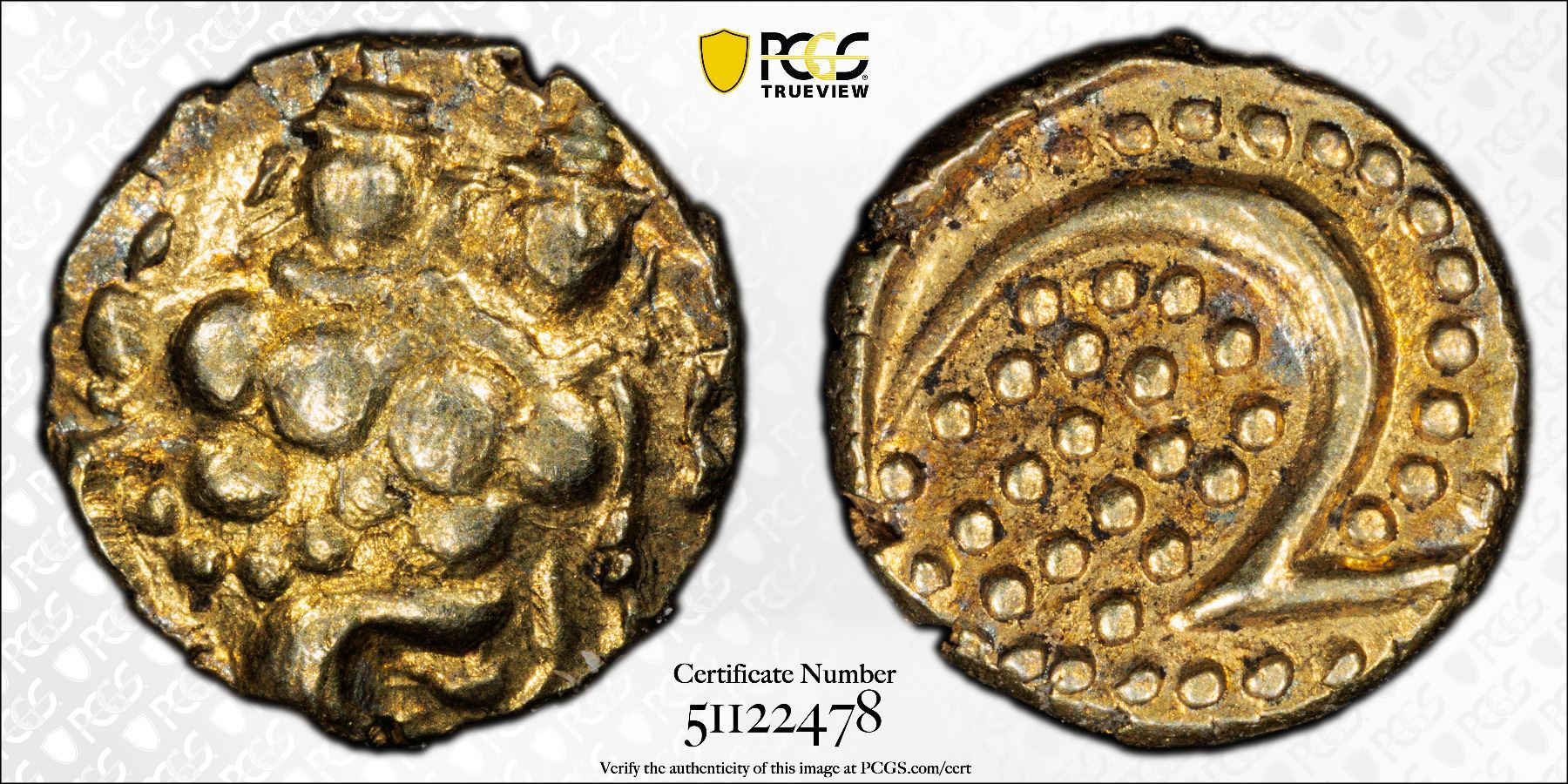 MYSORE: Haidar Ali, 1761-1782, AV fanam (0.32g), ND, KM-8, God Shiva with Parvati seated facing // Persian letter "He" (for Haidar Ali) in a granulated background, a pleasing mint state example, PCGS graded MS62.