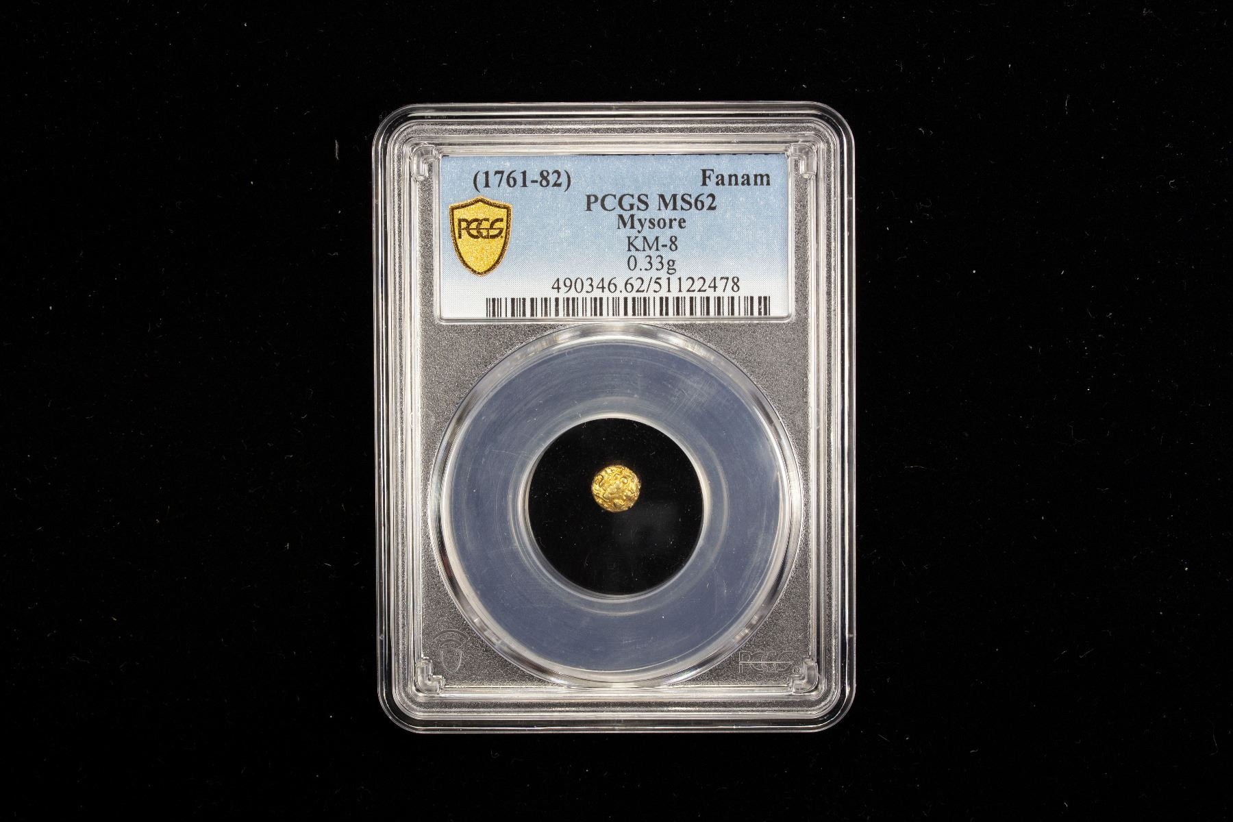 MYSORE: Haidar Ali, 1761-1782, AV fanam (0.32g), ND, PCGS MS62
