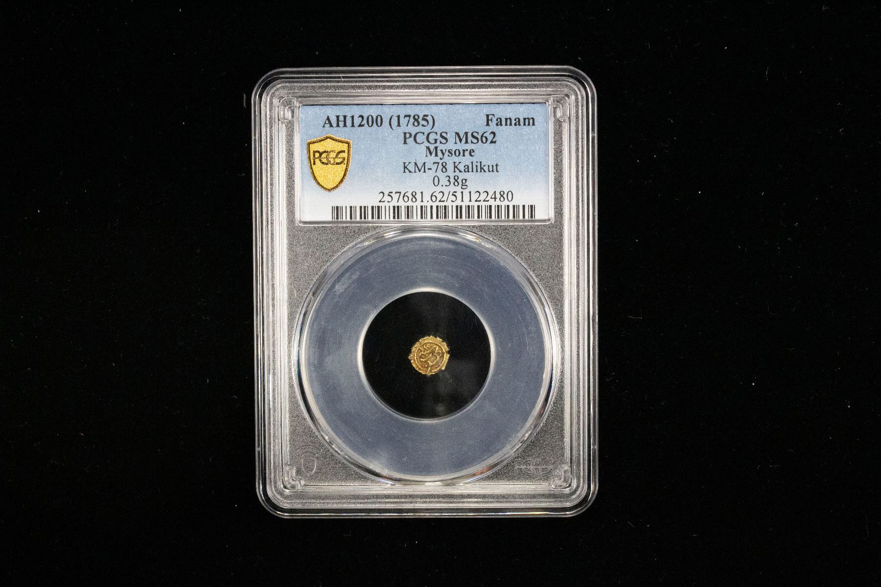 MYSORE: Tipu Sultan, 1782-1799, AV fanam (0.39g), Kalikut, AH1200, KM-78, a pleasing mint state example, PCGS graded MS62.