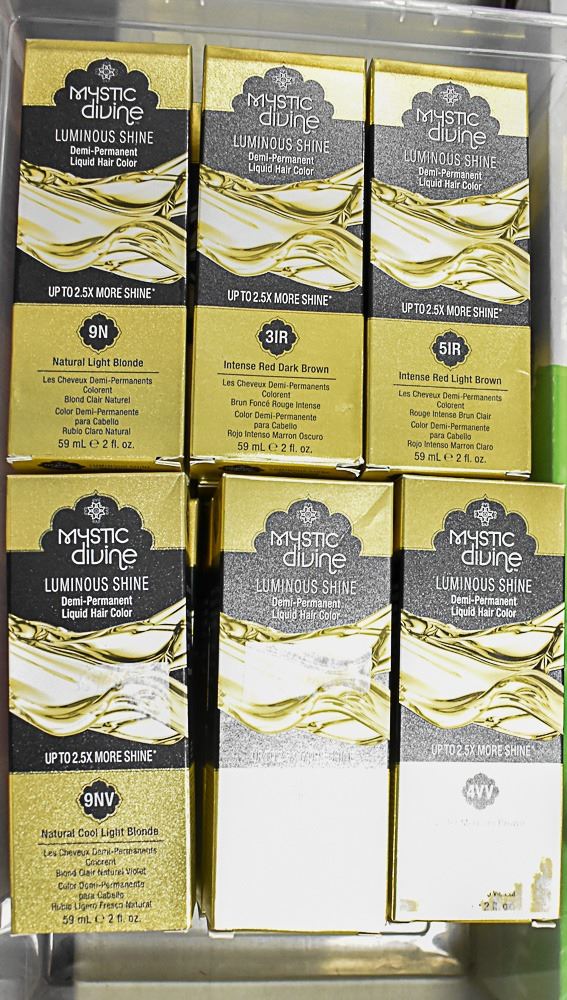 NEW LUMINIOUS SHINE ALL NEW IN BOXES 4 X 9NV -NATURAL COOL LIGHT BLONDE 4 X 4VV -VIOLET MEDIUM BROWN 1 X 1B - BLUE BLACK, 3 X 9N - NATURAL LIGHT BLONDE 3 X 3IR - INTENSE RED DARK BROWN 2 X 6N - NATURAL DARK BLONDE 1 X 5IR - INTENSE RED LIGHT BROWN