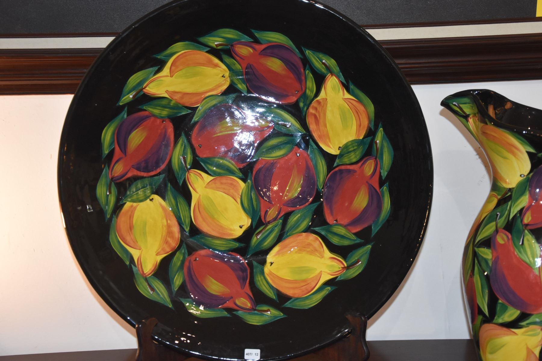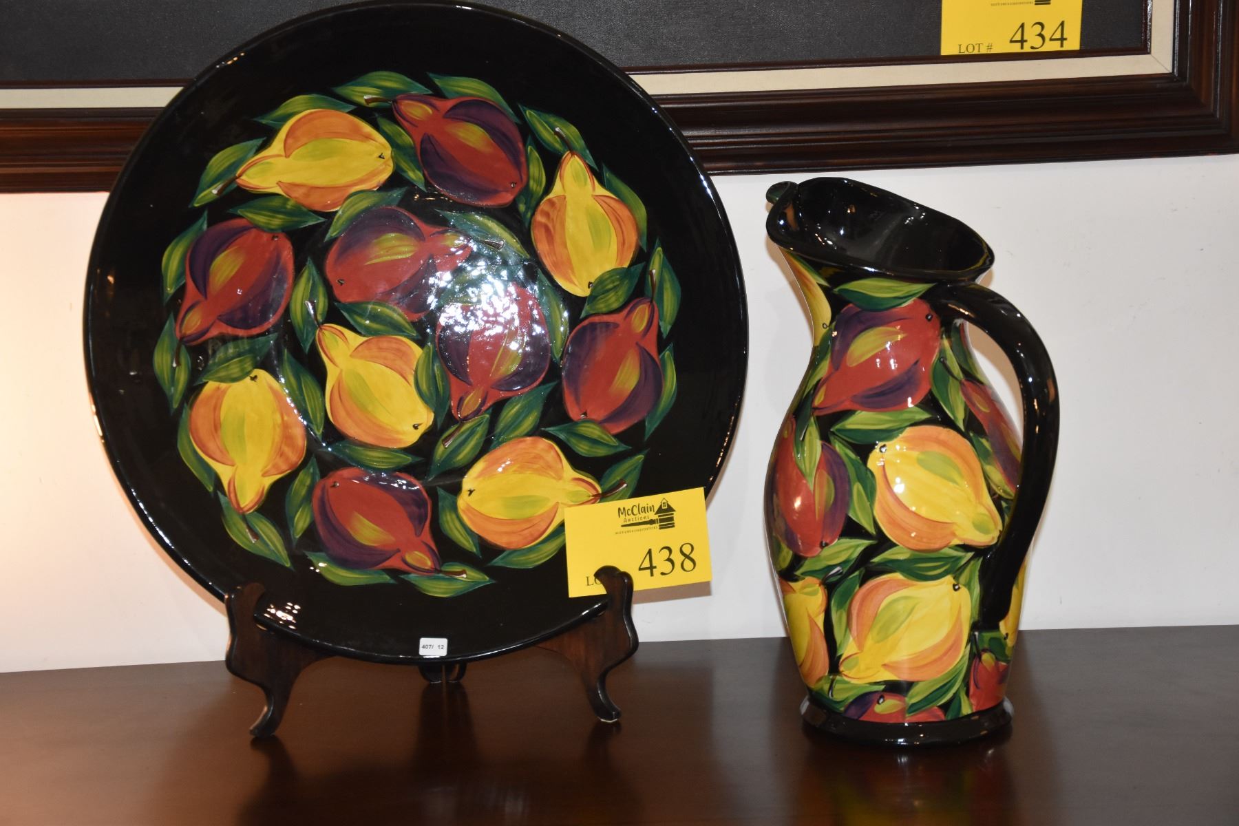 MYSTIC MUD STUDIO BOWL & PITCHER W/HARVEST PEAR MOTIF (2 PCS) (DOES NOT INCLUDE STAND)