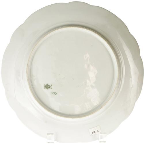 <B>MZ Austria China Baseball Plate</B></I> made in Austria by Moritz Zdekauer, circa 1900, this hand-painted china plate targeted the American market with its baseball theme. The face shows an infielder catching a speeding ball while another player looks on from a distance. The underside has an MZ over a Habsburg eagle in a dark green underglaze. 9.625" diameter, excellent condition.