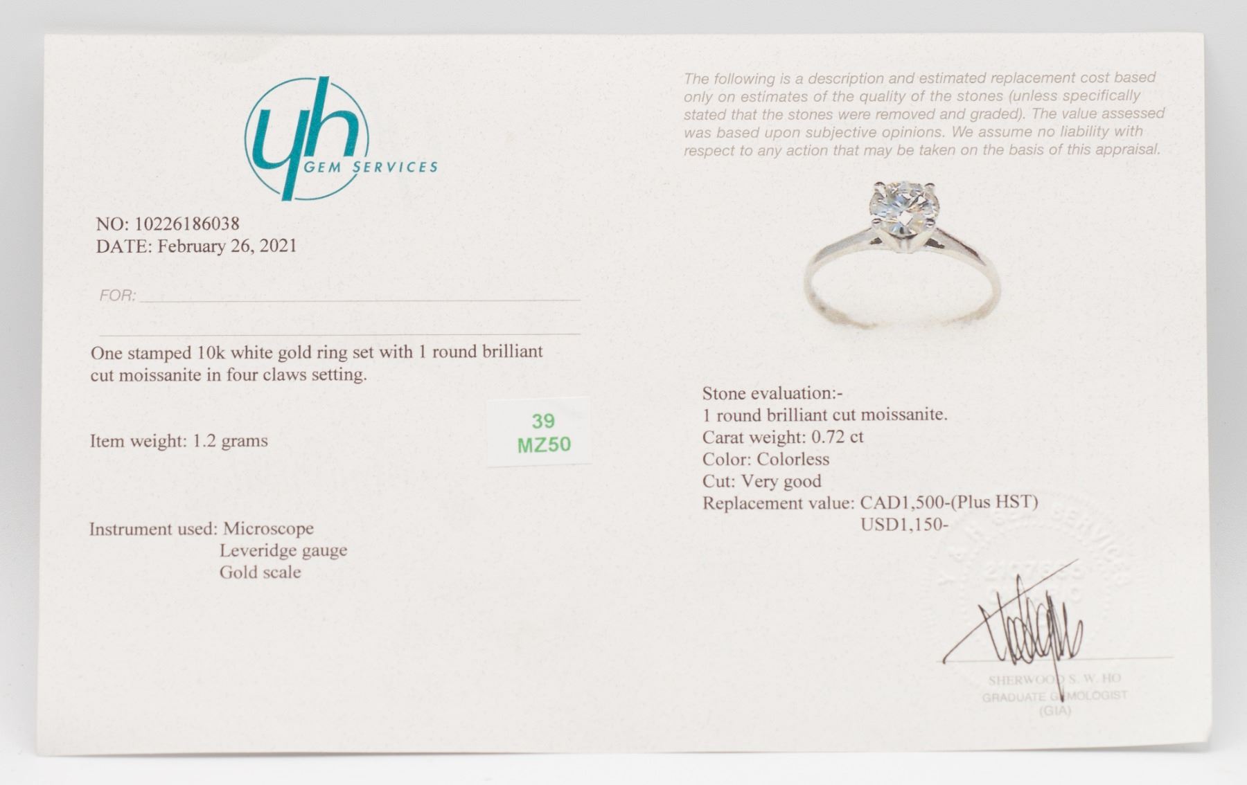 TOTAL WEIGHT 1.20 GRANS, CARAT WEIGHT 0.72 CUT VERY GOOD, COMES WITH CERTIFICATE OF AUTHENTICITY, VALUED AT $1,500.00