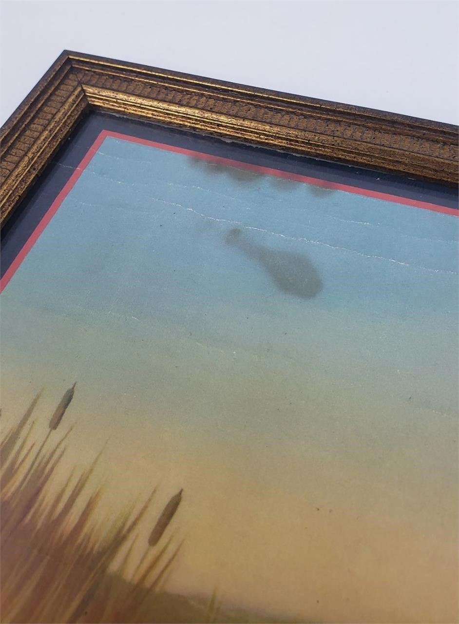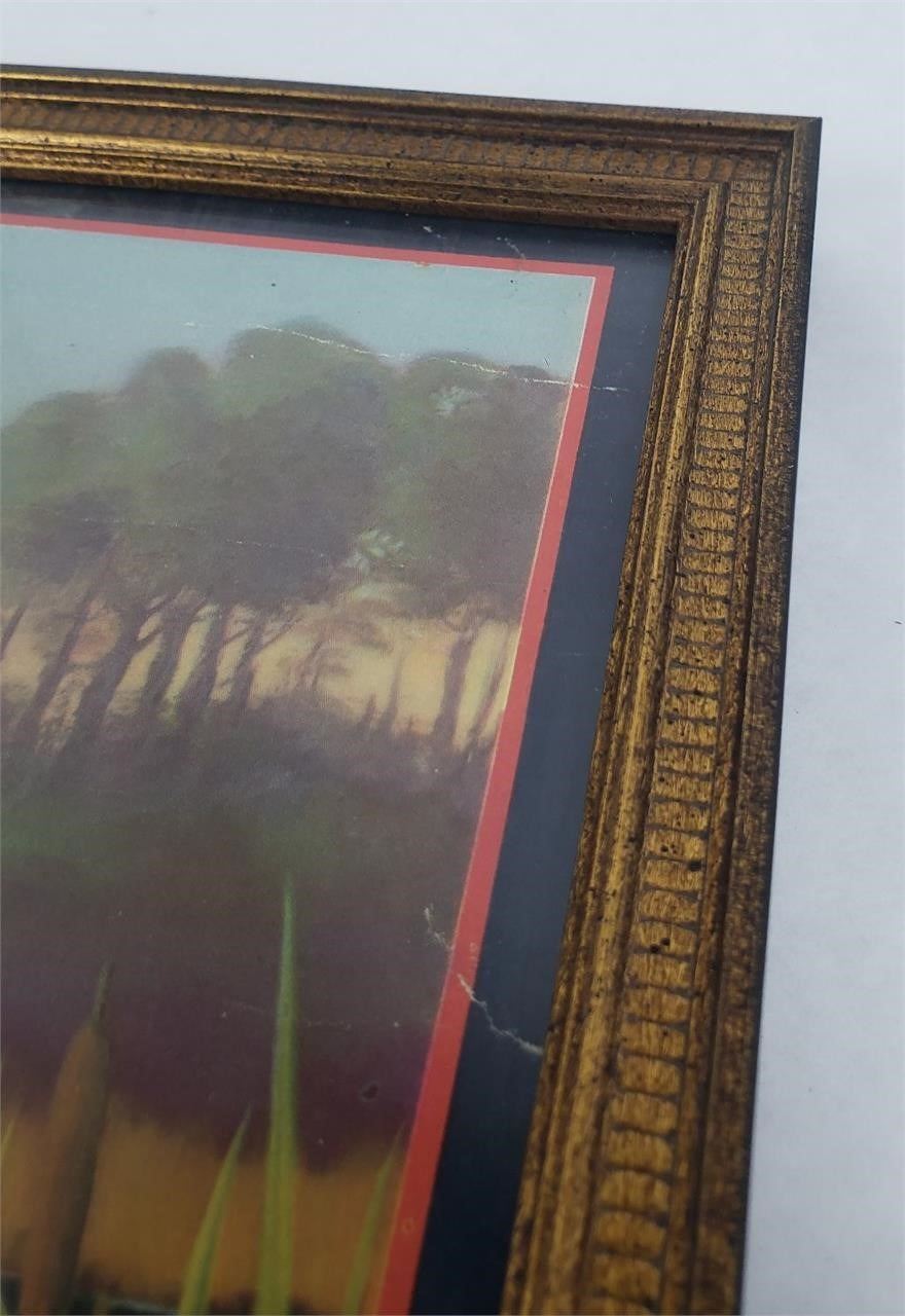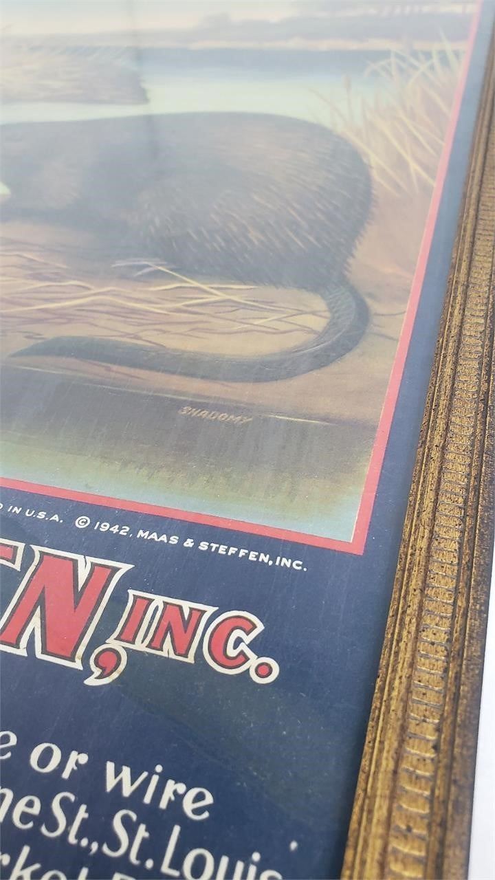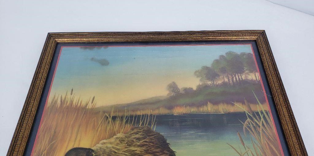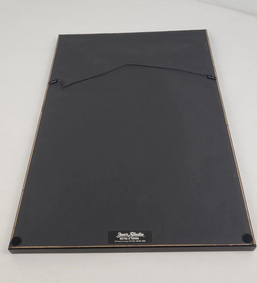 Calendar top only no pad. Some wear in the bottom left corner. Stain on the top. 14.5" by 21" framed.