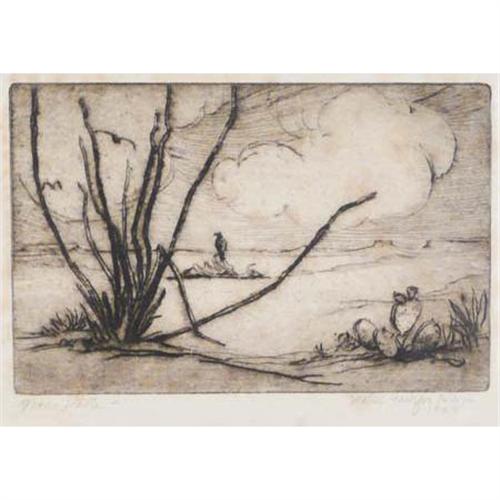 8065 Mabel Fairfax Karl (1901-1991) Etching "Texas Waste" 1928 Signed lower right 4 1/2" x 7"
