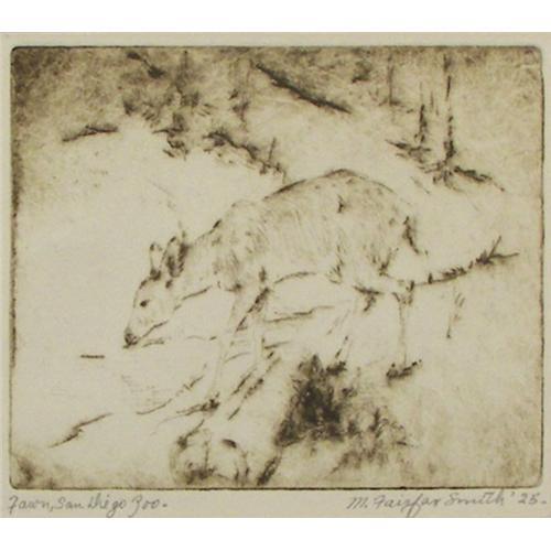 Mabel Fairfax Karl (1901-1990) Etching, "Fawn - San Diego Zoo", 1925, image size 4" x 4 7/8", pencil signed (maiden name)