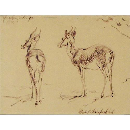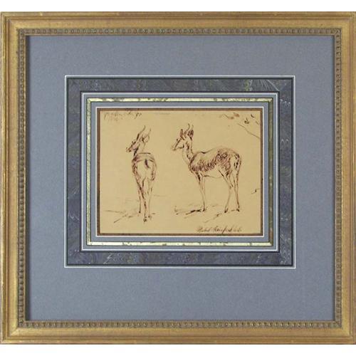 Mabel Fairfax Karl (1901-1990) Pen & Ink, "Gazelles, San Diego Zoo", 1930, sight size 5 3/8" x 7", signed lower right