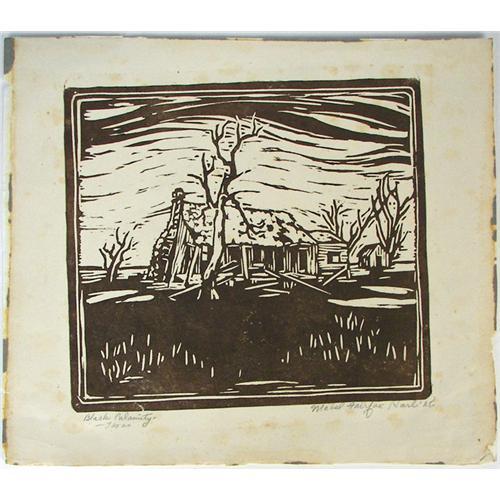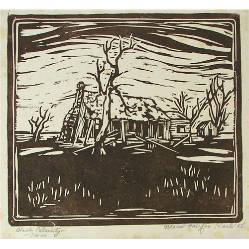 Mabel Fairfax Karl (1901-1990) Woodblock, "Black Calamity, Texas", 1925, image size 7 1/2" x 8 1/2", pencil signed