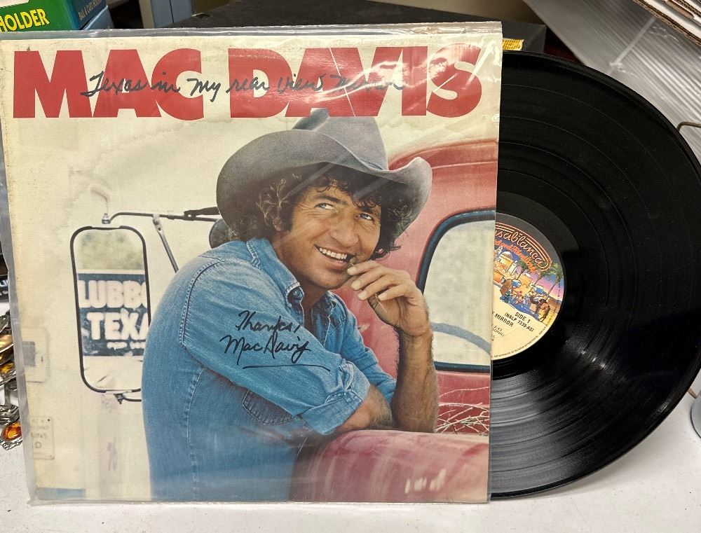The album cover is autographed and stored in a plastic sleeve. It shows some light edge wear consistent with its age. The vinyl appears clean with no major visible scratches.