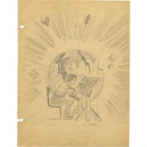 <B>Mac Raboy - George Roussos Sketchbook Self-Portrait Illustration Original Art (circa 1942).</B></I> While the world explodes in war, artist Mac Raboy keeps on penciling his Green Lama pages. This delightful self-portrait pencil drawing has an overall size of 9" x 11.75", and the art is in Very Good condition.<BR><BR><b>Shipping:</b> Flat Material, Small (<a target="_blank" href="http://www.heritageauctions.com/common/shipping.php">view shipping information</a>)
