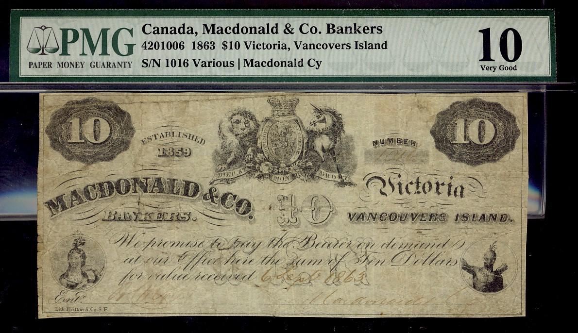 MacDonald & Co. Bankers 1863 $10 #1016 CH-42010-06 PMG VG10