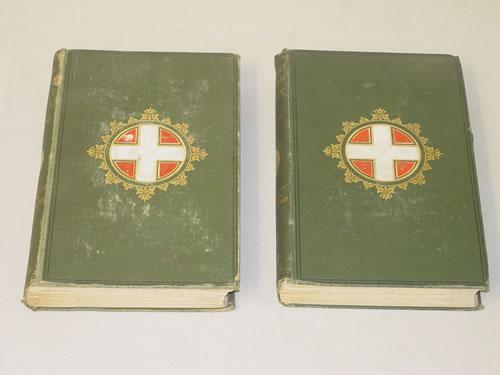 MacKenzie, G. Muir & Irby, A.P.. Travels in the Slavonic Provinces of Turkey-In-Europe - 2 Volumes. London: Daldy, Isbister & Co., 1877. 8vo - over 7¾" - 9¾" tall. Hard Cover. Ex-Library. Good Condition. 2nd Revised Edition with Preface by the Right Hon. W.E. Gladstone. COMPLETE with 2 Frontis, 2 Maps (1 folding) and 17 plates (1 folds). Vol. 1- Frontis (lacks tg) xvii [1] 1 list illustrations [1] color fold-out map (some tears) 313pp [1] 2 ads. Vol. 2 - fold-out frontis (with tg) title, [1] ii, 1 list illustrations [1] 342pp, 2 ads. In ORIGINAL BINDINGS of green cloth with gilt emblem. Covers show corner/edge wear, rubbed covers, wear to top/heel of backstrips with 1 chip, cracked hinges.