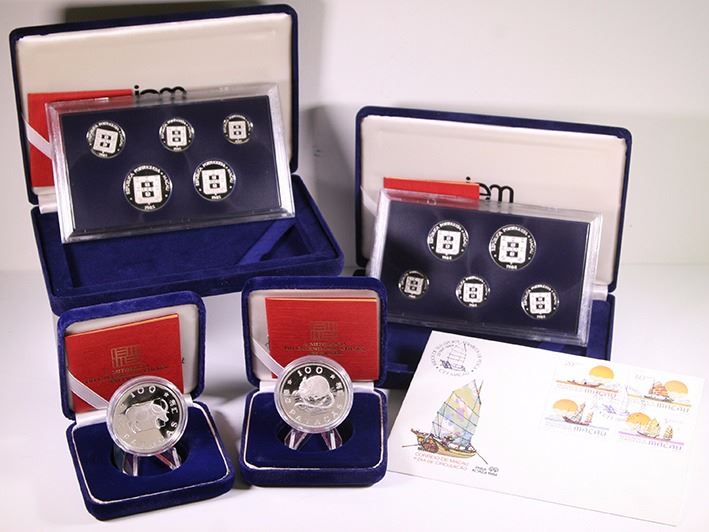 Macao, proof sets, 1984, 1985; together with proof silver 100 Patacas, 1984 Year of the Rat, 1985 Year of the Ox; plus Macau first day cover, 1984 (KM: PS3, PS4, 79, 84, ASW 1.682) (5 items)