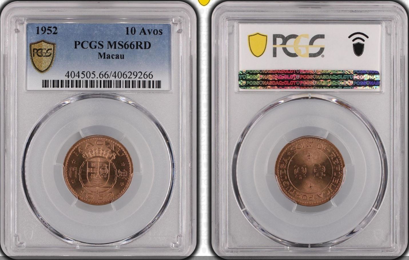 Macau. 1952, 10 Avos, PCGS MS66RD.