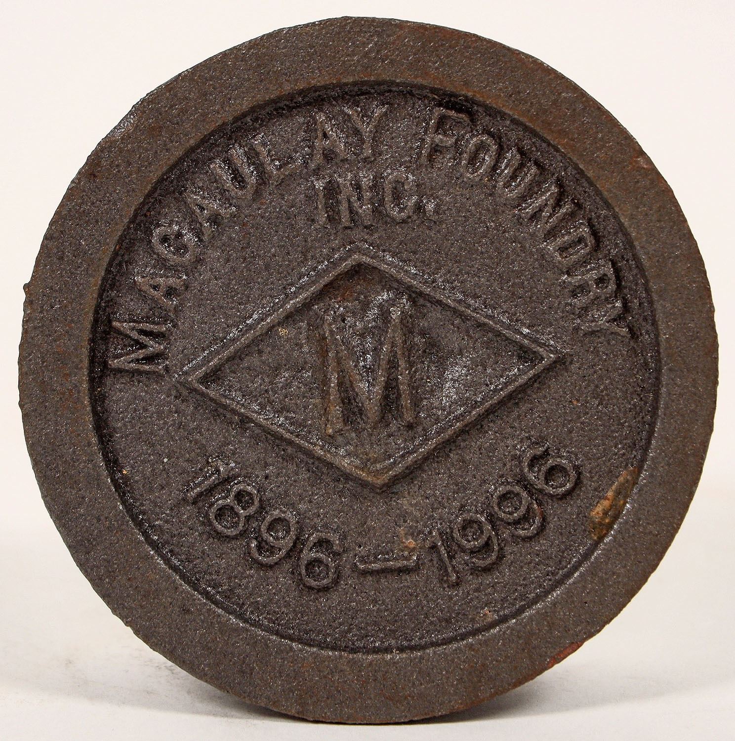 Macaulay Foundry cast iron ingot, c1996. Disc shaped ingot commemorates the Berkeley, Calif., company's centennial, 1896-1996. Approximate 3" diameter, 1" high.
