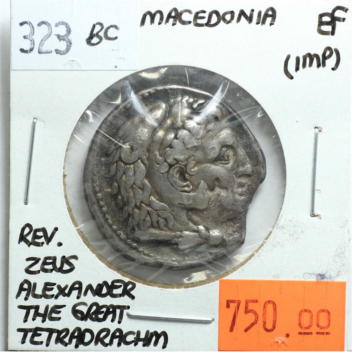 Macedonia 323 BC Tetradrachm; Alexander the Great; EF (Impaired); Reverse - Zeus