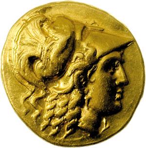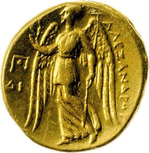 Mondo Greco. Grecia Continentale. Macedonia. Alessandro Magno (336-323 a.C.). Statere d'oro, Teos. D/ Testa di Athena a destra. R/ AΛΕΞANΔPOY. Nike stante a sinistra tiene corona e stendardo navale. Nel campo a sinistra, monogramma ΠΟ/ΔΙ. Price 2263. AU. g. 8.60 mm. 17.50 SPL/qSPL.