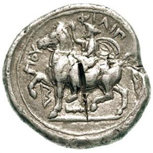 Grecia Continentale. Macedonia. Filippo II (359-336 a.C.). Tetradracma. D/ Testa di Zeus a destra. R/ Cavaliere macedone su cavallo al passo a sinistra. Cfr. Grose 3328 var. gr. 14.37 R. AG. Tacca di saggio, non deturpante, al R/, altrimenti bel BB+.
