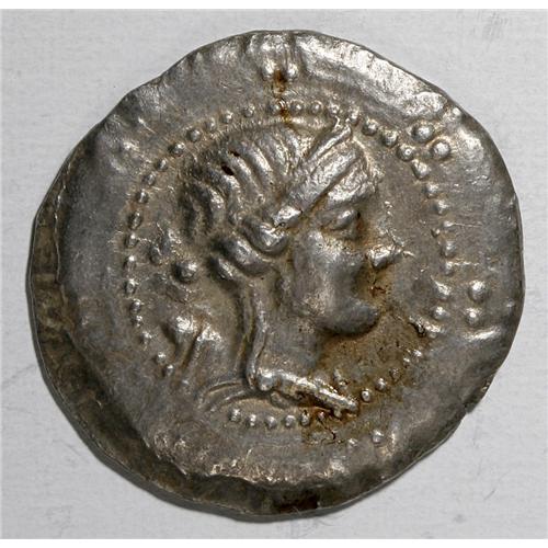 <B>Macedonia under the Romans. First Meris.</B></I> Ca. 167-148 B.C. AR tetradrachm (33 mm, 16.82 g). Amphipolis. Diademed and draped bust of Artemis right, bow and quiver over shoulder, in the center of a Macedonian shield decorated with seven eight-pointed stars within double crescents, each separated by three pellets / Club; monogram above; all within oak wreath, thunderbolt to left. SNG Ashmolean 3292. <B>Toned XF,</B></I> obverse die deteriorated.<BR><BR><b>Shipping:</b> Coin/Currency (<a target="_blank" href="http://www.heritageauctions.com/common/shipping.php">view shipping information</a>)