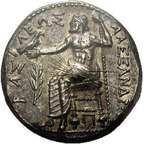 <B>Macedonian Kingdom. Alexander III.</B></I> 336-323 B.C. AR tetradrachm (23 mm). 'Amphipolis', ca. 320-317 B.C. Head of Herakles right, wearing lion's skin headdress / Zeus seated left, holding eagle and sceptre; grain-ear before, letter below. Price 122; Müller 570. AU58 ICG.