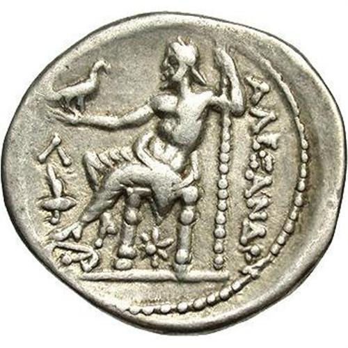 <B>Macedonian Kingdom. Alexander III.</B></I> 336-323 B.C. AR tetradrachm (28 mm, 16.98 g). Amphipolis, ca. 315-297 B.C. Head of Herakles right, wearing lion's skin headdress / Zeus seated left, holding eagle and sceptre; (Lambda) and torch before, star below throne. Price 474; Müller 97. VF.
