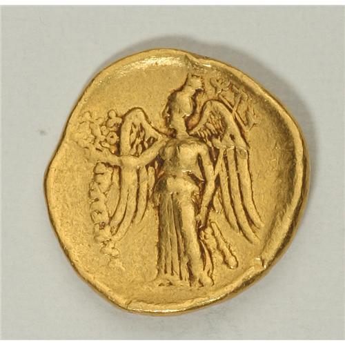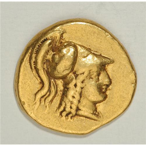 <B>Macedonian Kingdom. Alexander III.</B></I> 336-323 B.C. AV stater (19 mm, 8.58 g). Sidon, 333-305 B.C. Head of Athena right, wearing crested Corinthian helmet; bowl ornamented with a griffin / Nike standing left, holding wreath and stylis; club in lower right field. Price 3460; Newell 4; Muller -. <B>Near VF.</B></I><BR><BR><b>Shipping:</b> Coin/Currency (<a target="_blank" href="http://www.heritageauctions.com/common/shipping.php">view shipping information</a>)