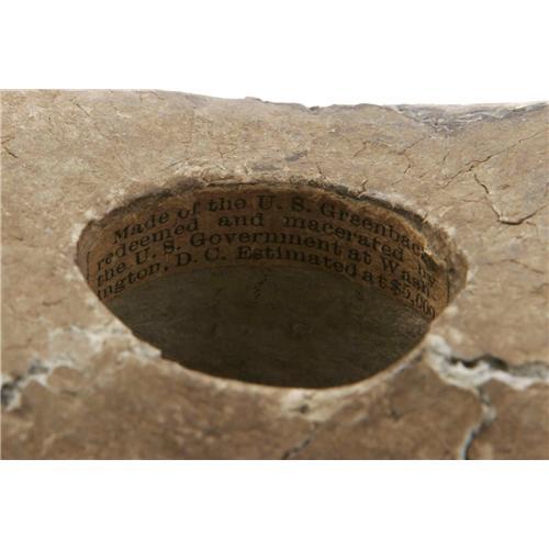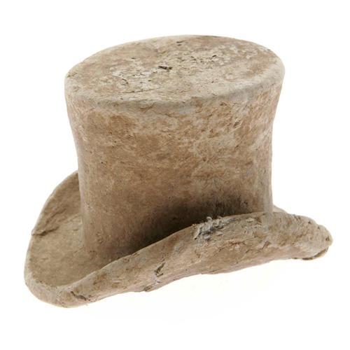 <B>Macerated Top Hat.</B></I> This top hat has its label inside and estimates that the hat contains $5000 in U.S. currency. The hat has an upturned brim on each side and both sides have slight cracks.