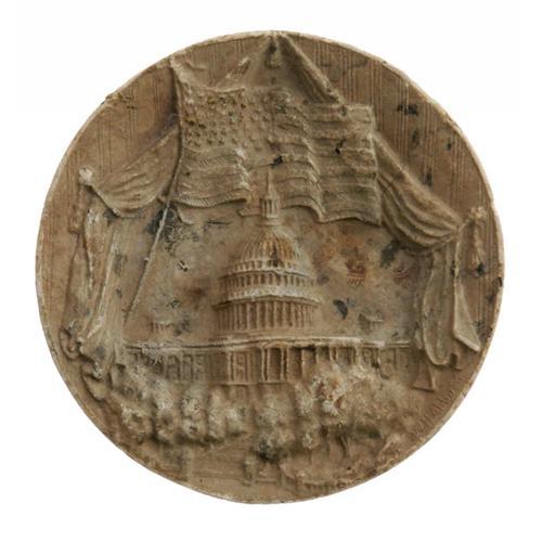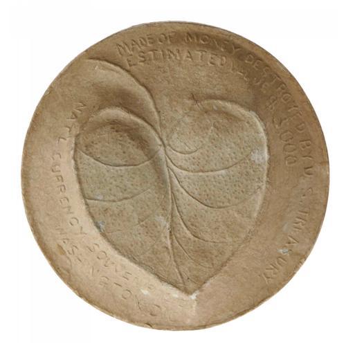<B>Macerated U.S. Capitol Disc.</B></I> An unexceptional disc made by the National Currency Souvenir Company, except for the fact that unusually large pieces of several different types of notes are visible.