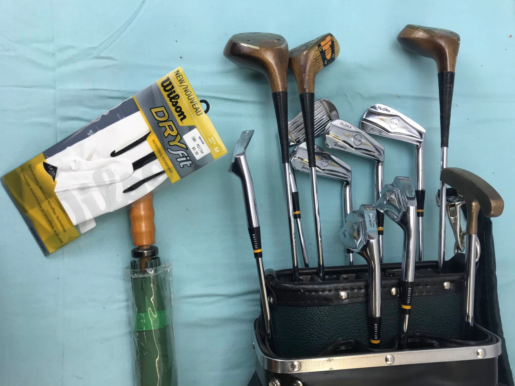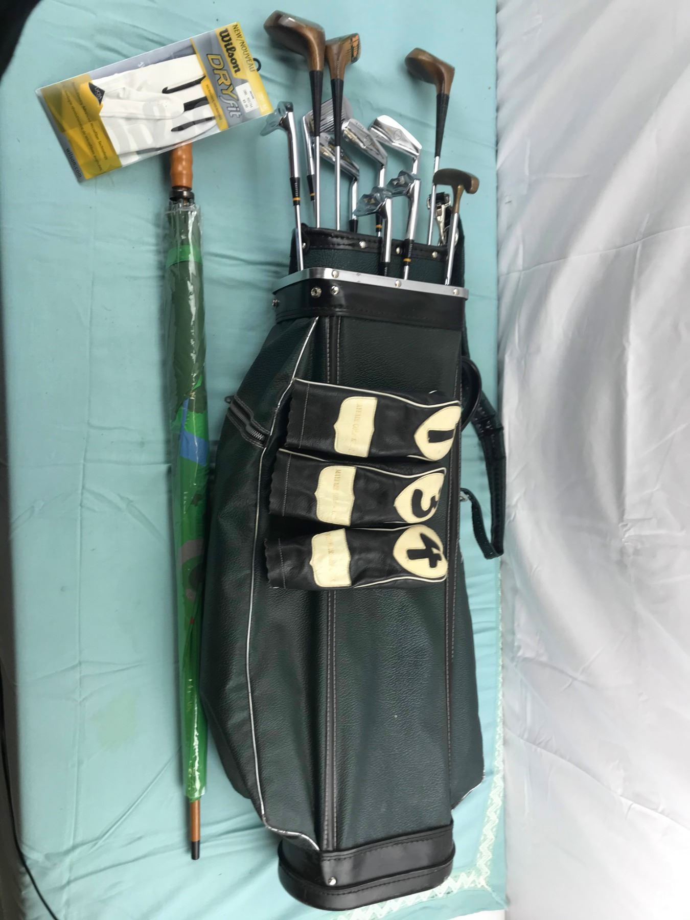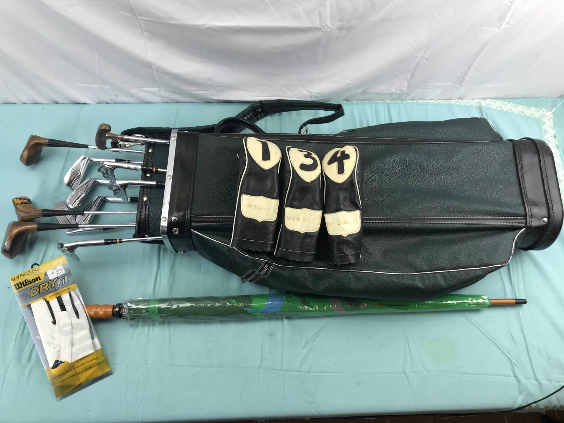 Right Handed - Macgregor Clubs includes Woods #1, #3, #4 - Putter - Irons #3-9 - New umbrella, new left handed medium glove
