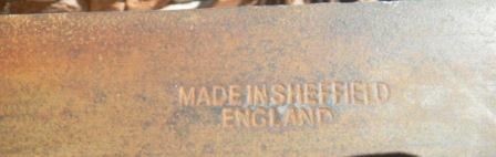 Sheffield Machete WWII measures 20 one half by two inch made in Sheffield, England. Condition use wear and rust. Shipping $18.00