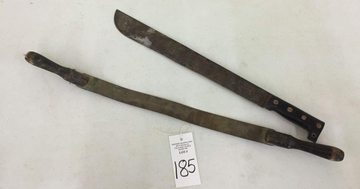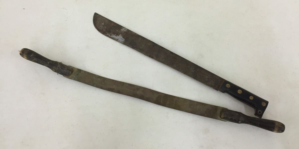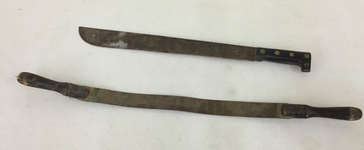 The machete measures 22.5” long and is marked, Martin, Made in Belgium. The old draw-knife is 28” long and is not marked. Please look closely at pics - they are an important part of our description. Shipping: There will be a $7 handling / packaging fee for shipping this lot. The actual cost of postage will be added on top of that.