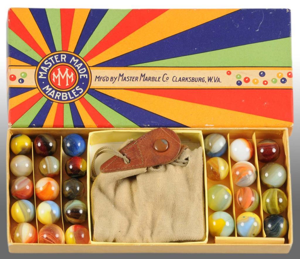 Includes 27 original marbles with bag. Condition (Near Mint Plus). Size Box: 8" x 3 - 1/2".