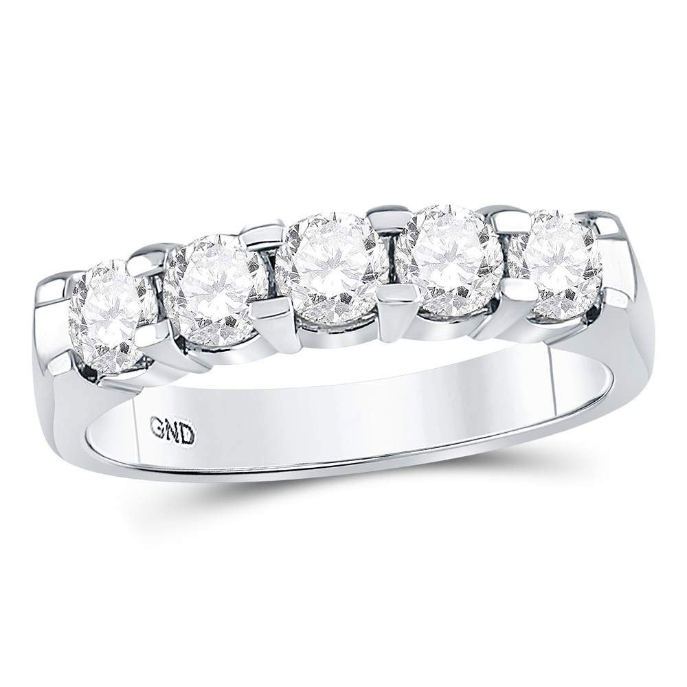 14kt White Gold Womens Machine Set Round Diamond 5-stone Wedding Band 1 Cttw.