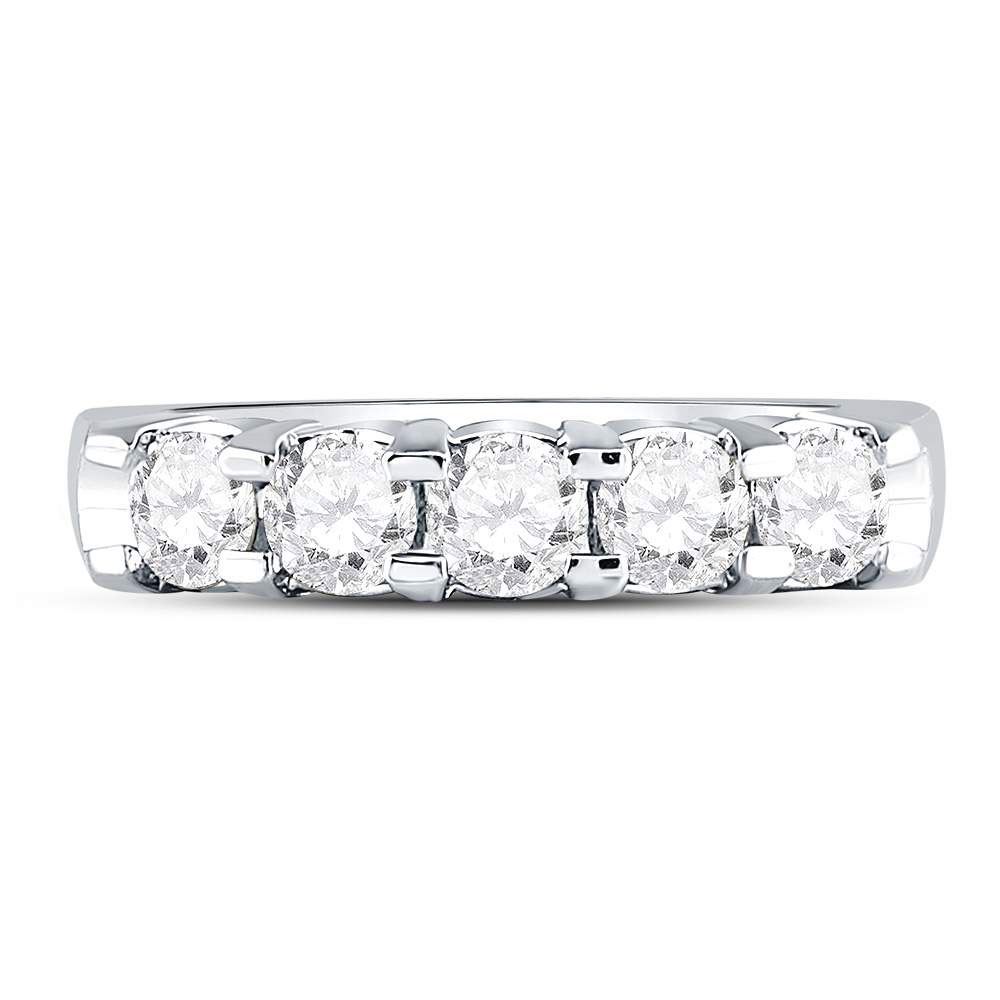Machine Set Round Diamond 5-stone Wedding Band 1 Cttw 14KT White Gold