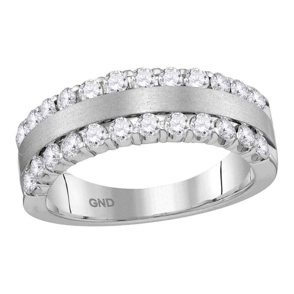 14kt Brushed White Gold Womens Machine-Set Round Diamond Band Ring 1 Cttw.