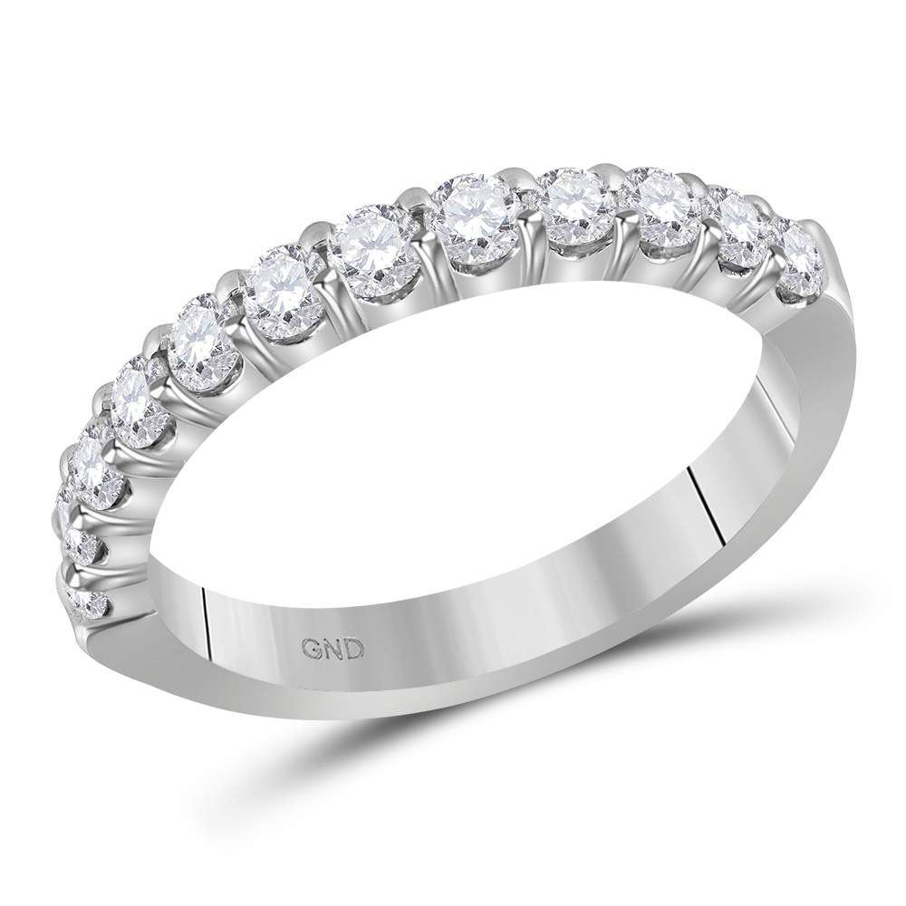 14kt White Gold Womens Machine Set Round Diamond Single Row Wedding Band 1/2 Cttw.