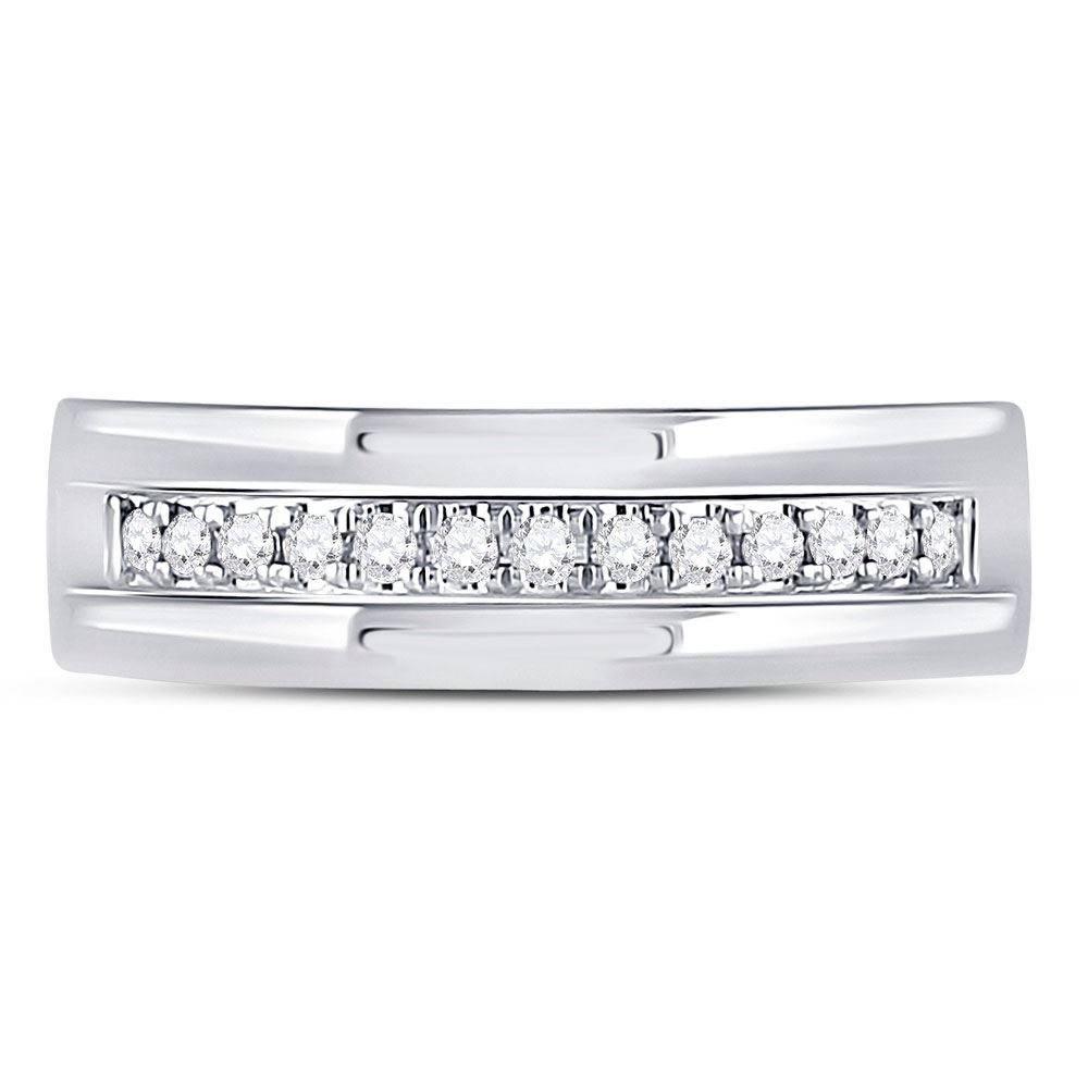 14kt White Gold Mens Machine Set Round Diamond Wedding Band Ring 1/5 Cttw.