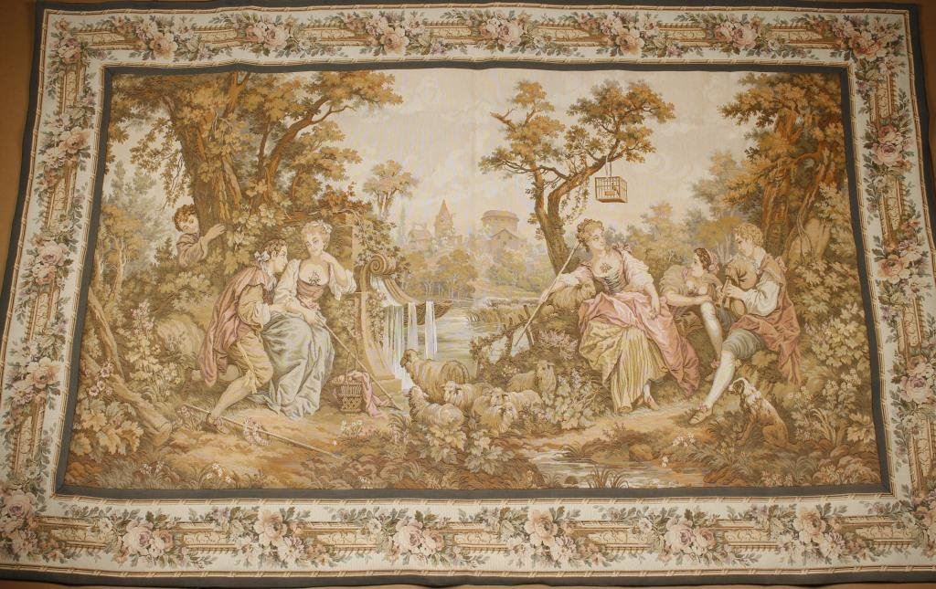 Machine woven tapestry in 18th Century scenes; approximately 84” x 58”; very intricate; excellent condition; modern; may have some silk in wool. Est.: $250-$500.