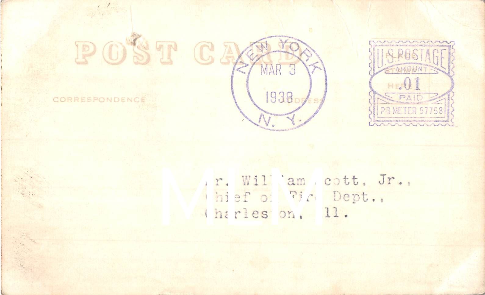 Upper left corner crease. Postmarked 1938.