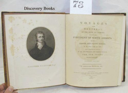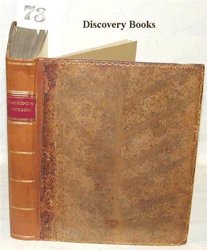 Mackenzie, Alexander. VOYAGES FROM MONTREAL ON THE RIVER ST. LAWRENCE, THROUGH THE CONTINENT OF NORTH AMERICA, TO THE FROZEN AND PACIFIC OCEANS: IN THE YEARS 1789 AND 1793 ...... London: T. Cadell & W. Davies, etc 1801 4to. ( title),viii,,xi-cxxxii,412(2: errata)pp. Frontis port, 3 lg folding maps, one partly hand colored. Old tree calf boards, modern reback. Some scattered foxing and off setting to maps, generally very good.
